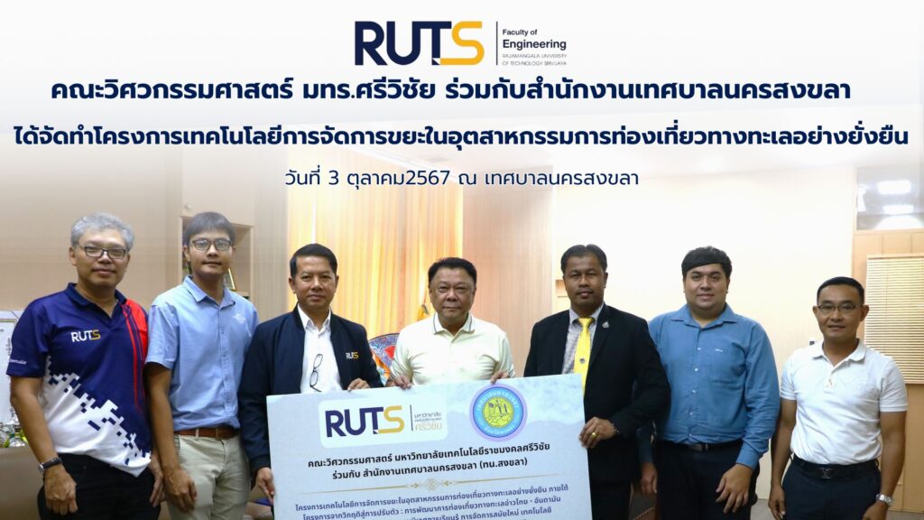 วันที่ 3 ตุลาคม 2567 นำโดย ผู้ช่วยศาสตราจารย์ อุดร นามเ … อ่านเพิ่มเติม คณะวิศวกรรมศาสตร์ มหาวิทยาลัยเทคโนโลยีราชมงคลศรีวิชัย ร่วมกับสำนักงานเทศบาลนครสงขลา ได้จัดทำโครงการเทคโนโลยีการจัดการขยะในอุตสาหกรรมการท่องเที่ยวทางทะเลอย่างยั่งยืน