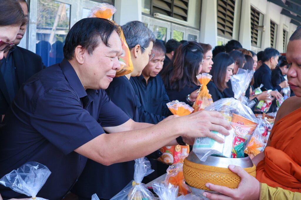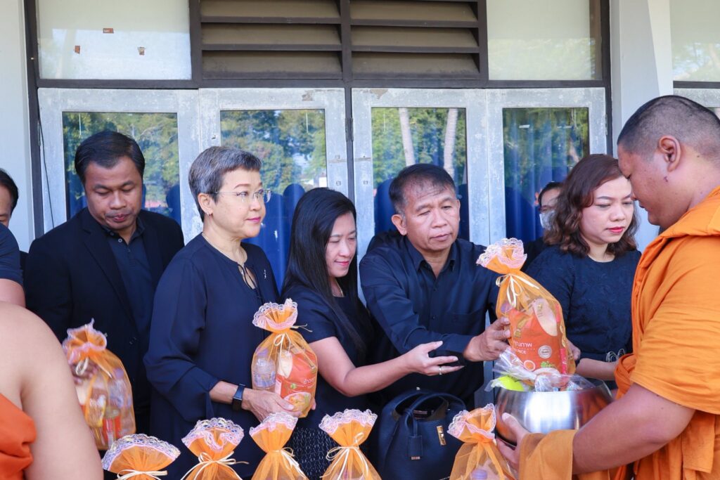 ทั้งนี้ ผู้บริหาร คณาจารย์ และบุคลากร ได้ร่วมกันทำบุญตักบาตรข้าวสารอาหารแห้ง เพื่อถวายเป็นพระราชกุศลแด่ สมเด็จพระนางเจ้าสิริกิติ์ พระบรมราชินีนาถ พระบรมราชชนนีพันปีหลวง