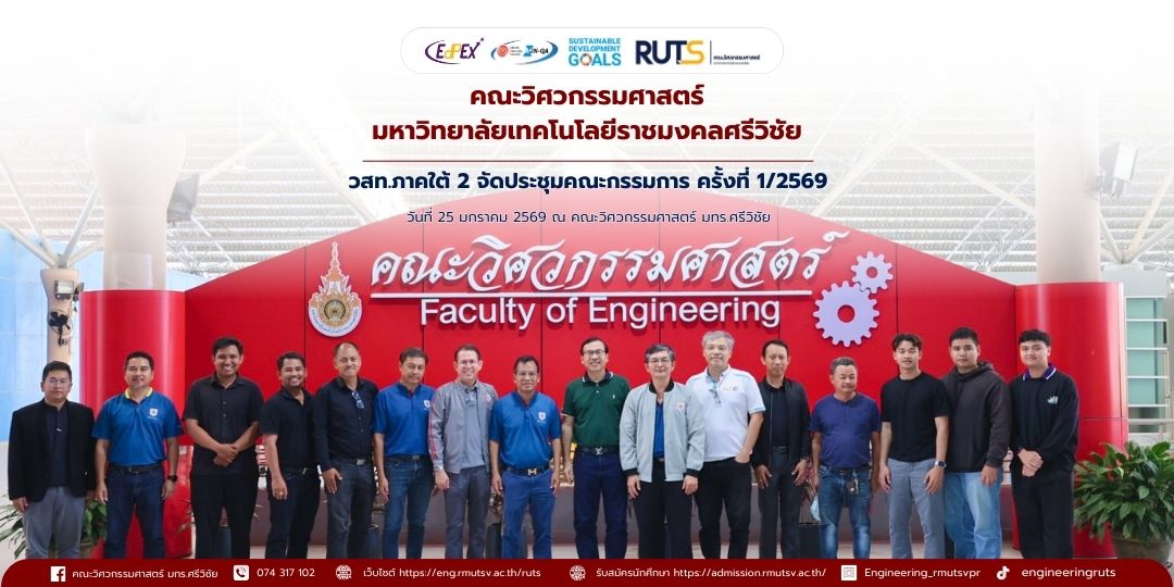วันที่ 25 มกราคม 2569 วิศวกรรมสถานแห่งประเทศไทย ในพระบรมราชูปถัมภ์ ภาคใต้ 2 (วสท.ภาคใต้ 2) ได้จัดการประชุมคณะกรรมการ ครั้งที่ 1/2569 ณ ห้องประชุม ชั้น 2 สำนักงาน วสท.ภาคใต้ 2 มหาวิทยาลัยเทคโนโลยีศรีวิชัย สงขลา โดยมี รศ.ดร.นันทขัย ชูศิลป์ เป็นประธานในการประชุม พร้อมด้วยที่ปรึกษาและคณะกรรมการเข้าร่วมประชุม