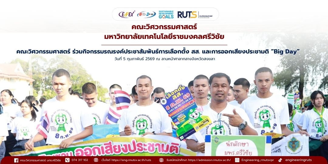 วันที่ 5 กุมภาพันธ์ 2569 รองศาสตราจารย์สุรสิทธิ์ ระวังวงศ์ คณบดีคณะวิศวกรรมศาสตร์ ได้มอบหมายให้ อาจารย์เสรี ทองชุม รองคณบดีฝ่ายบริหารและวางแผน พร้อมด้วยนักศึกษา เข้าร่วมกิจกรรมรณรงค์ประชาสัมพันธ์การเลือกตั้งสมาชิกสภาผู้แทนราษฎร (สส.) และการออกเสียงประชามติ “Big Day” ภายใต้แนวคิด “สร้างสรรค์ประเทศไทย พร้อมใจไปเลือกตั้ง” ณ ลานหน้าศาลากลางจังหวัดสงขลา