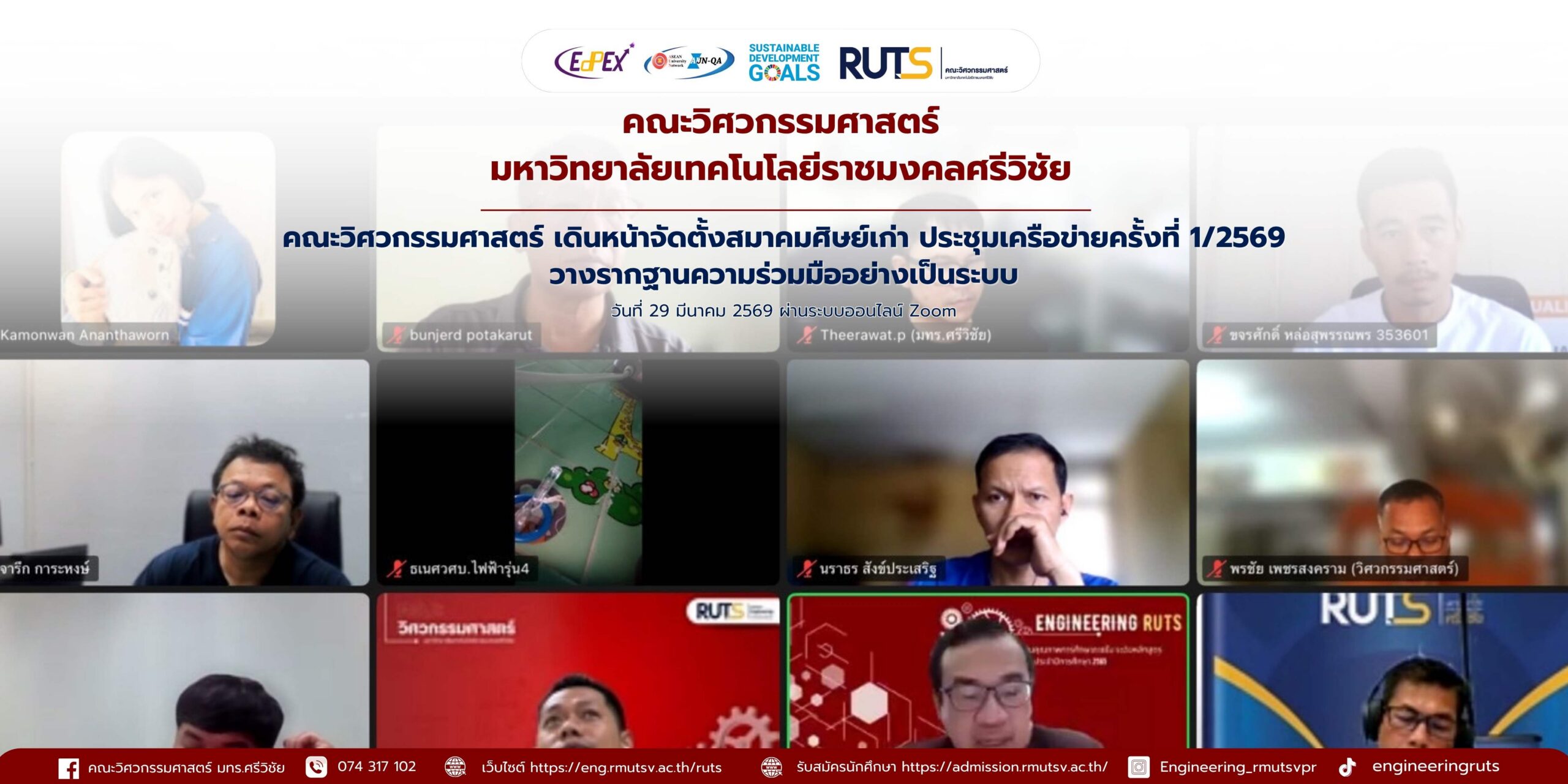 การประชุมดังกล่าวจัดขึ้นเมื่อวันอาทิตย์ที่ 29 มีนาคม 2569 เวลา 09.30 น. ผ่านระบบออนไลน์ Zoom โดยมีคณะกรรมการเครือข่ายศิษย์เก่าเข้าร่วมอย่างพร้อมเพรียง เพื่อหารือแนวทางการดำเนินงานให้เป็นไปอย่างมีระบบ ต่อเนื่อง และเกิดประสิทธิภาพสูงสุด