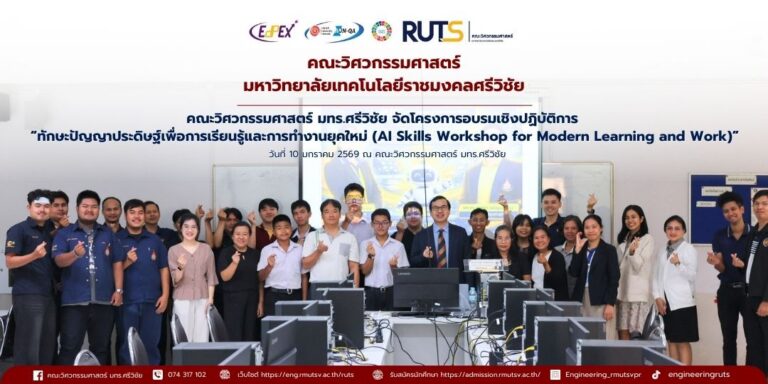 ข่าวประชาสัมพันธ์ คณะวิศวกรรมศาสตร์ มทร.ศรีวิชัย จัดโครงการอบรมเชิงปฏิบัติการ “ทักษะปัญญาประดิษฐ์เพื่อการเรียนรู้และการทำงานยุคใหม่ (AI Skills Workshop for Modern Learning and Work)”มกราคม 10, 2026กุมภาพันธ์ 11, 2026